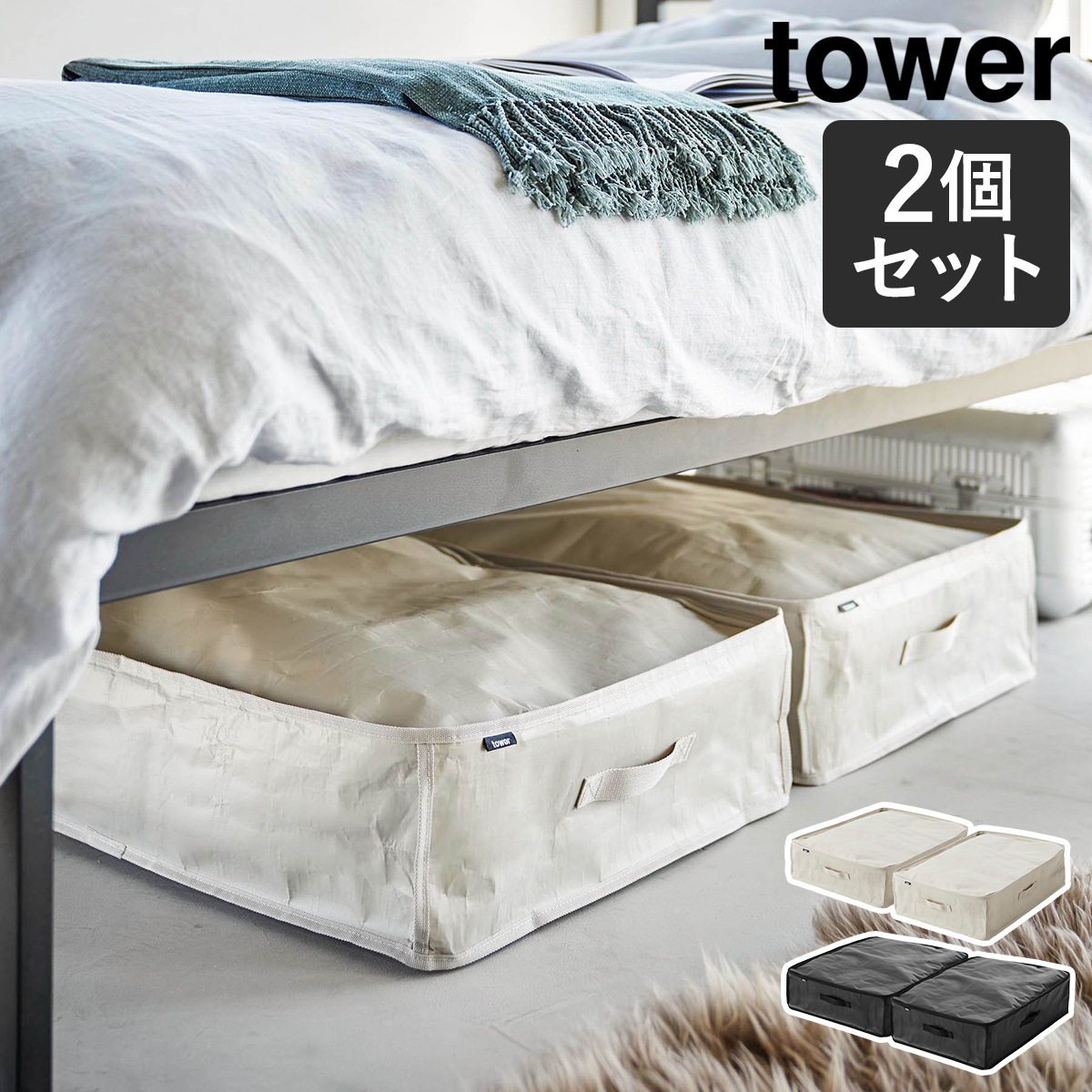■[ ポリエチレンシート ソファ&ベッド下収納ケース タワー 2個組 ]山崎実業 tower 布団収納袋 衣類収納袋 布団収納 衣類収納 収納ケー
