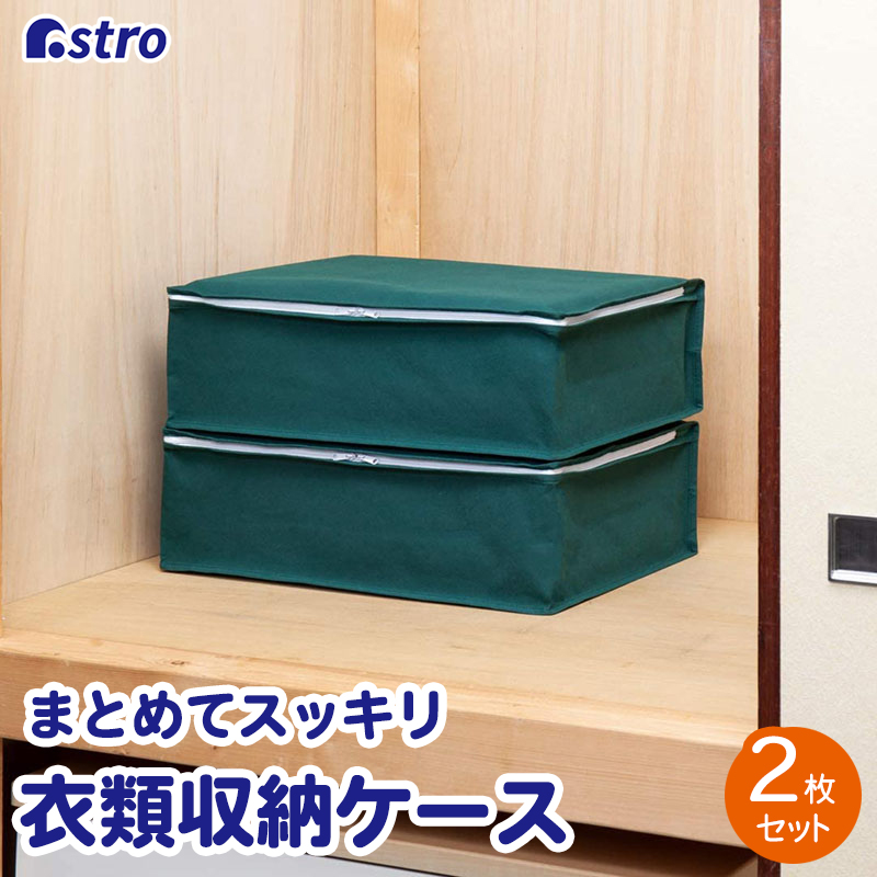 ■収納ケース 衣類収納 不織布製 2個組 グリーン 収納袋 通気性良好 ほこり除け アストロ 618-62