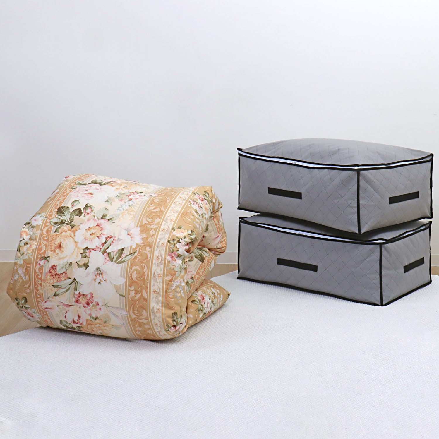 ◆商品名:アストロ 活性炭消臭 羽毛布団収納ケース グレー 2枚組 シングルサイズ・ダブルサイズ兼用 活性炭のチカラで消臭保管 全面活性炭シート入