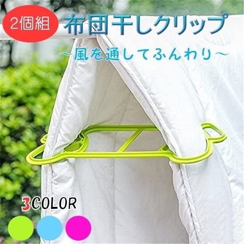 【布団干しクリップ 2個組】 【カラー】ブルー/グリーン/ピンク 【数量】同色2個セット 布団に空間をつくり、風を通します! 毛布などの薄手のものもしっかり挟める。 【購入前にお読みください】 ※素材の特性上、スレや小傷がある可能性がございます。 ※説明書は付属しません。 ※サイズには多少の誤差がある可能性があります。 ※デザインは品質向上の為、予告なく変更になる場合がございます。 ※お使いのスマホ、PCの解像度によって画像と実物の色味が多少異なる可能性があります。 ※ご使用中の怪我や事故等、弊社は一切の責任を負いかねますので 購入者様の管理下でのご使用をお願い致します。 上記をご理解頂ける方のみご購入お願い致します。