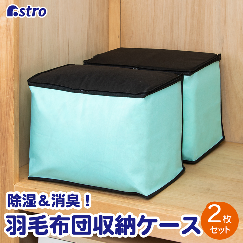 ■アストロ 収納ケース 羽毛布団用 2個組 ウォーターブルー×ブラック 不織布 シリカゲル 吸湿 消臭 除湿 618-77