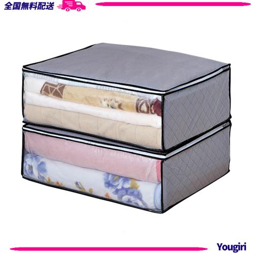 ◆商品名:【90L 大容量 4 個組】透明双視窗 衣類・布団収納ケース 通気性不織布 大開口上部ファスナー 持ち手付き 押し入れ・寝室・床底収納用 グ