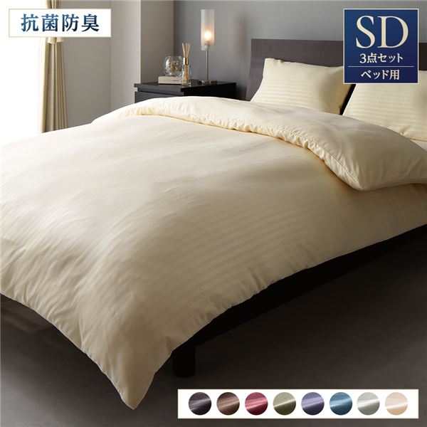 ■ベッドカバー 3点組 【セミダブル アイボリー】 掛け布団カバー ボックスシーツ 枕カバー 抗菌 清潔 防臭 洗える ウォッシャブル 〔寝室