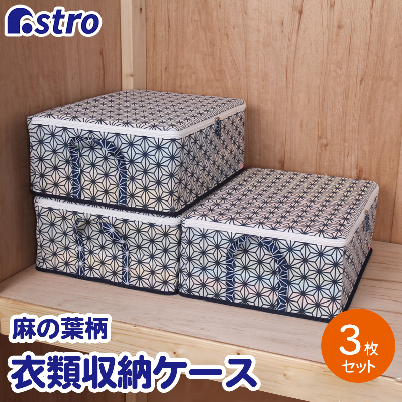 商品名:ストレージスタイル 麻の葉柄 衣類収納ケース 3個組カラー:ホワイト柄:麻の葉柄サイズ:約幅48×奥行38×高さ18cm材質:ポリプロピレン内容:3個生産国:中国【収納目安(1ケースあたり)】●厚手セーター:約5~7枚●薄手シャツ:約20~25枚【特長】●通気性の良い不織布でオフシーズンの衣類を湿気やホコリから守り保管。●ダブルスライダーでコの字型に大きく開くので、衣類の出し入れがスムーズ。●白地に紺色で伝統的な麻の葉柄をプリント。持ち手付きで持ち運びもカンタン。●別サイズの同シリーズ、毛布用、羽毛布団用、敷布団用と合わせて使ってもOK。【ご注意】●洗濯はできません。