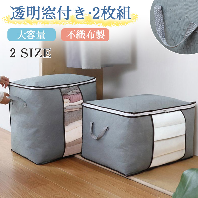 ■布団収納袋 布団袋 収納ケース 2枚組 布団一式用 大容量 掛け 敷布団をまとめてスッキリ 通気性の良い不織布製 持ち手 透明窓付