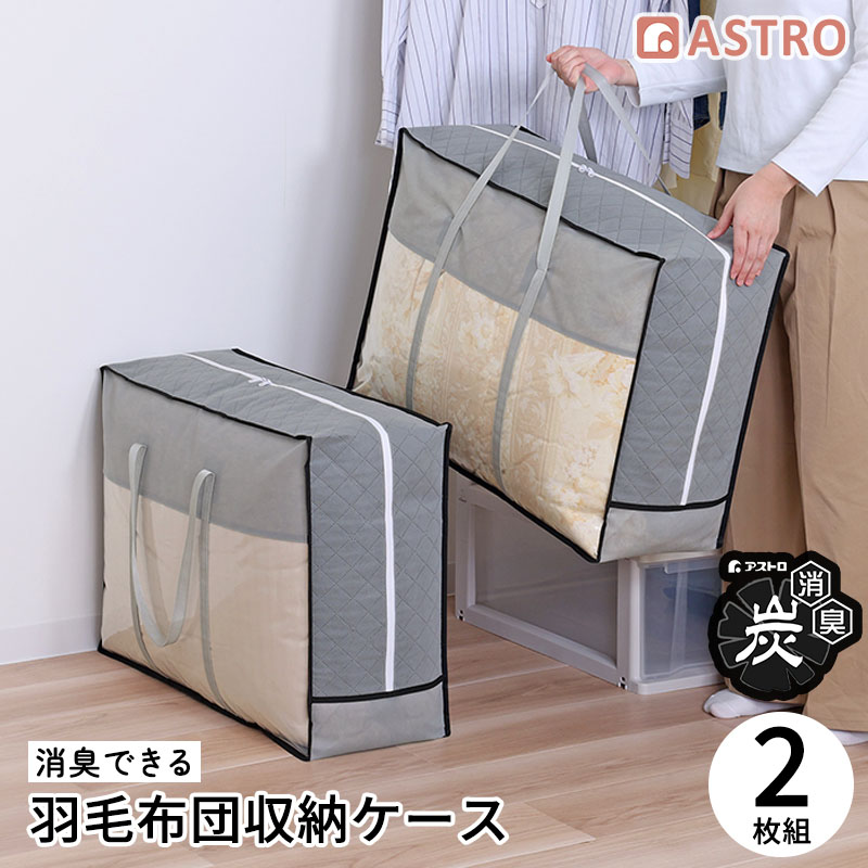 ■アストロ 活性炭消臭 羽毛布団収納袋 2枚組 シングル・ダブル兼用 収納ケース 収納バッグ 通気性の良い不織布 持ち手付き 171-67