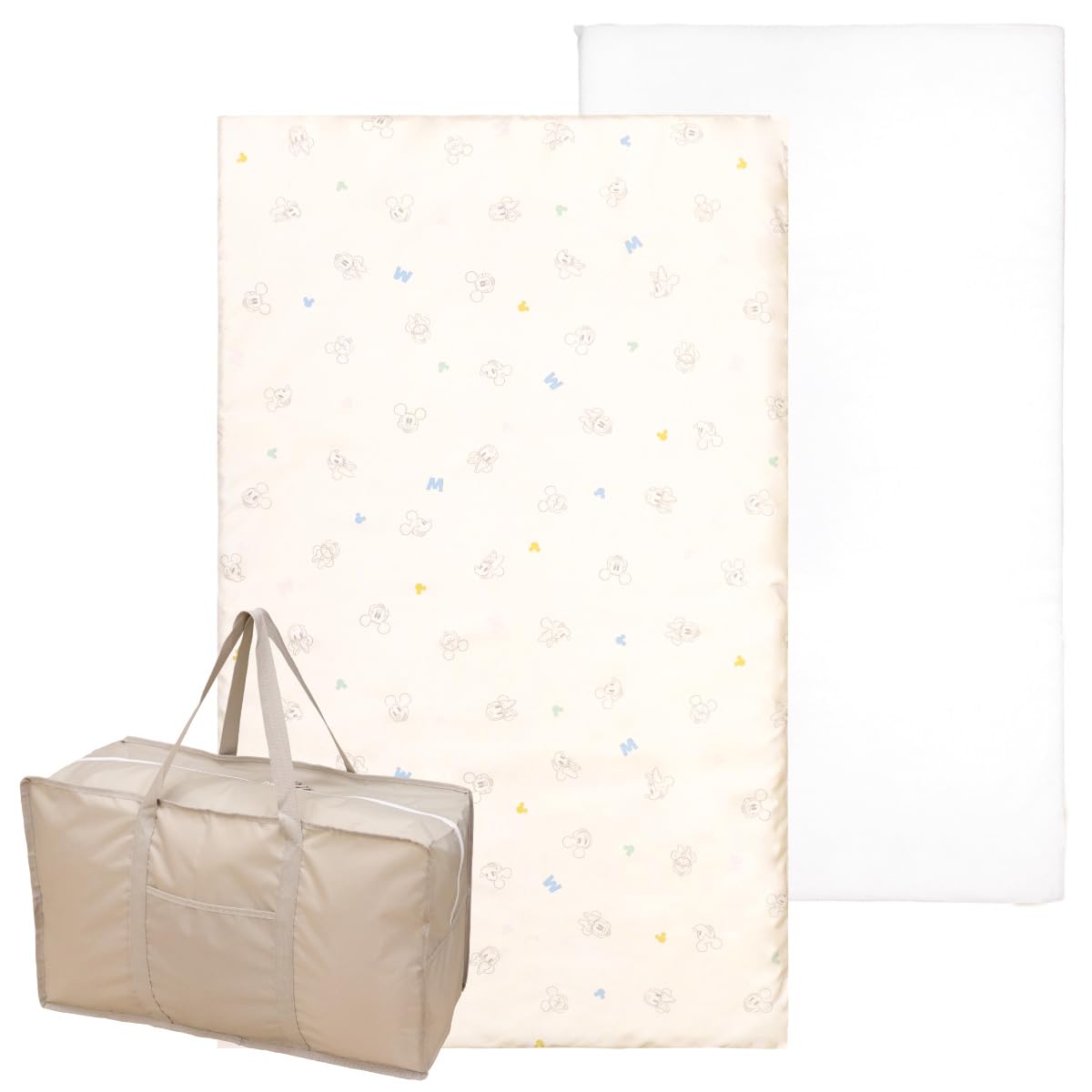 ■ディズニー お昼寝布団 保育園 3点セット 70×120cm ミッキー・ミニー 吸水 ファスナー 固わたマット 防水撥水バッグ ネームタグ 新品 キ