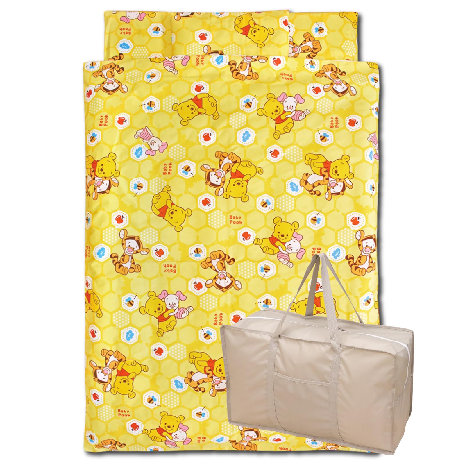 ■ディズニー お昼寝布団セット ベビープー(イエロー地) 充実の8点セット 綿100% 洗える敷き布団 防水バッグ 名前ワッペン ネームタグ お