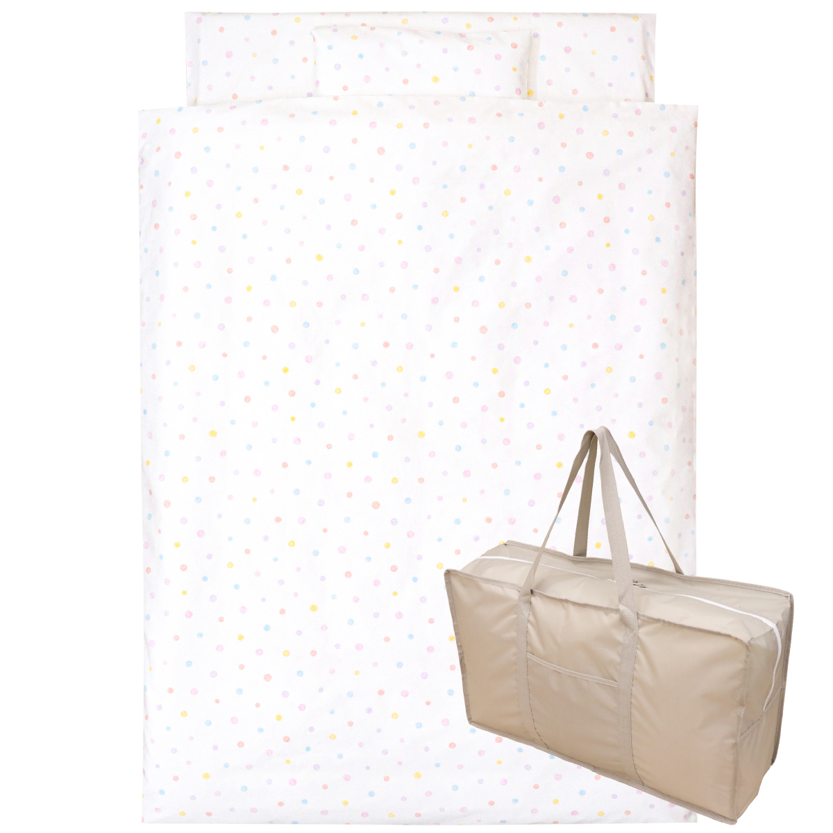 ■お昼寝布団セット ピンクドット 充実の8点セット 綿100% 洗える敷き布団 防水バッグ 名前ワッペン ネームタグ お昼寝ふとん ファスナー