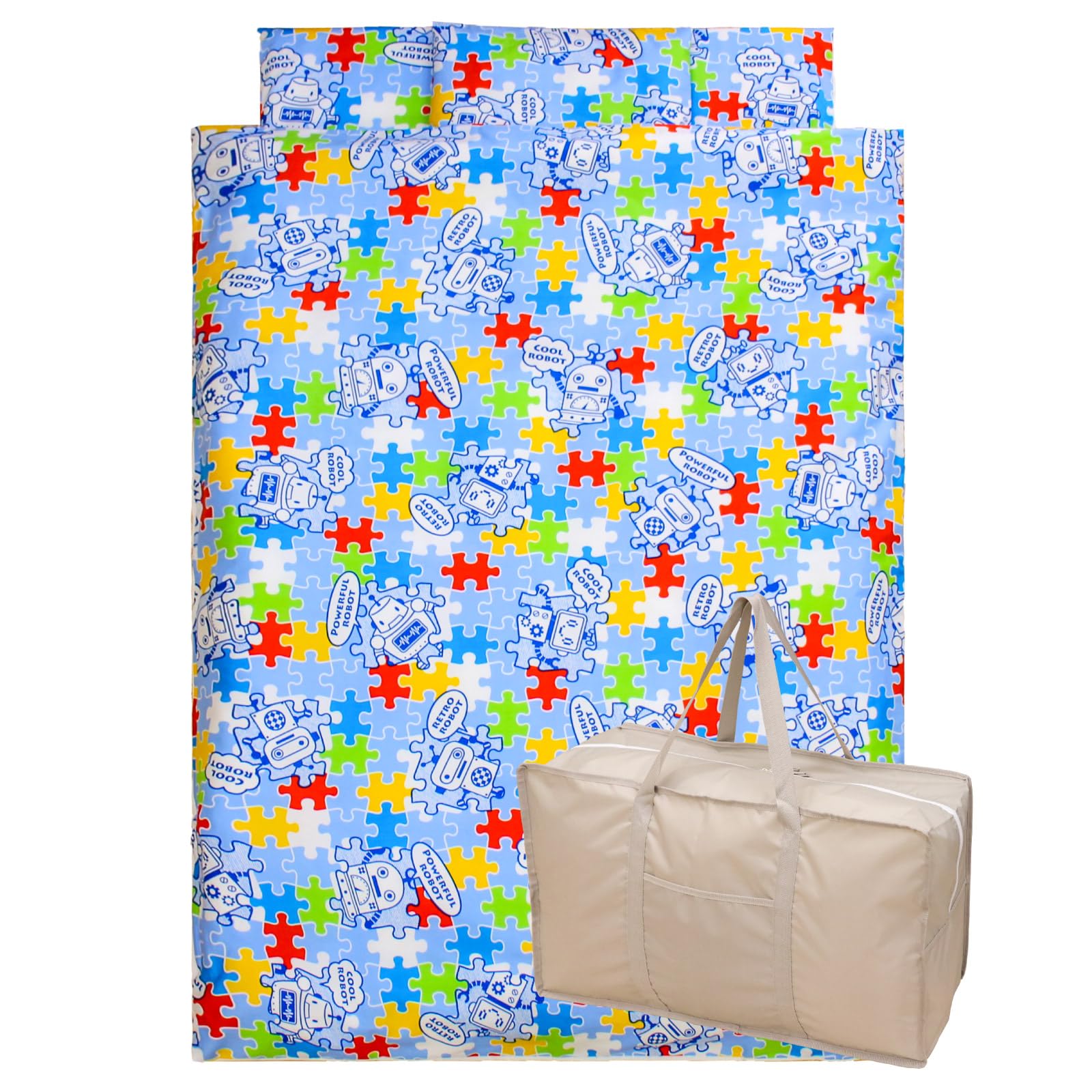 ■お昼寝布団セット ロボット 充実の8点セット 綿100% 洗える敷き布団 防水バッグ 名前ワッペン ネームタグ お昼寝ふとん ファスナーカバ