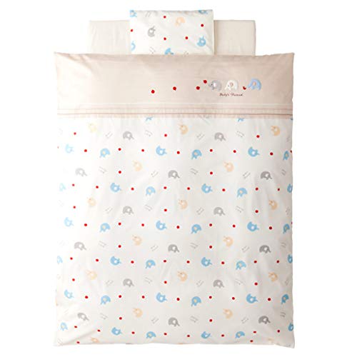 肌に触れる素材や縫製にこだわり、いつも清潔・快適にお使いいただける日本製のお布団です。 赤いりんごが大好き!元気いっぱいぞうさん柄です。 【中芯】軽くて保温性に優れ、ベビー用ふとんわたとしても最もポピュラーな素材のポリエステル綿です。 【敷布団】赤ちゃんの為の最高の敷布団、エコホールサンドマット(高機能三層構造)。通気性に優れ、大人以上に汗をかく赤ちゃんも快適に眠ることが出来ます。また適度な固さで背骨もしっかり支えます。 〔素材〕綿100%(ブロード)、掛中芯:ポリエステル100% 、敷芯:エコホールサンドマット 、枕:側生地 綿100%・中身:発泡ポリスチレン 〔サイズ〕掛カバーリング 約縦125*横100cm 、掛芯 約縦125*横100cm 、敷布団 約縦120*横70*高7cm 、枕 約縦22*横36cm 、シーツ(無地ブロード/ベージュ) 約縦120*