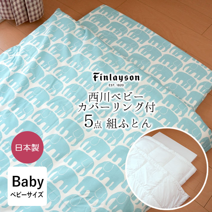 ■フィンレイソン 西川 ベビー組布団 5点セット 日本製 エレファンティ柄 ベビー組布団 ベビーふとんセット 出産準備 16便 LF59282010