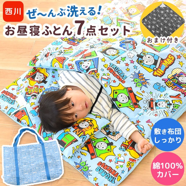 ■おまけ付き お昼寝布団セット 保育園 西川 洗える きかんしゃトーマス 7点セット 綿100% 幼稚園 お昼寝布団 セット カバー ファスナー バ