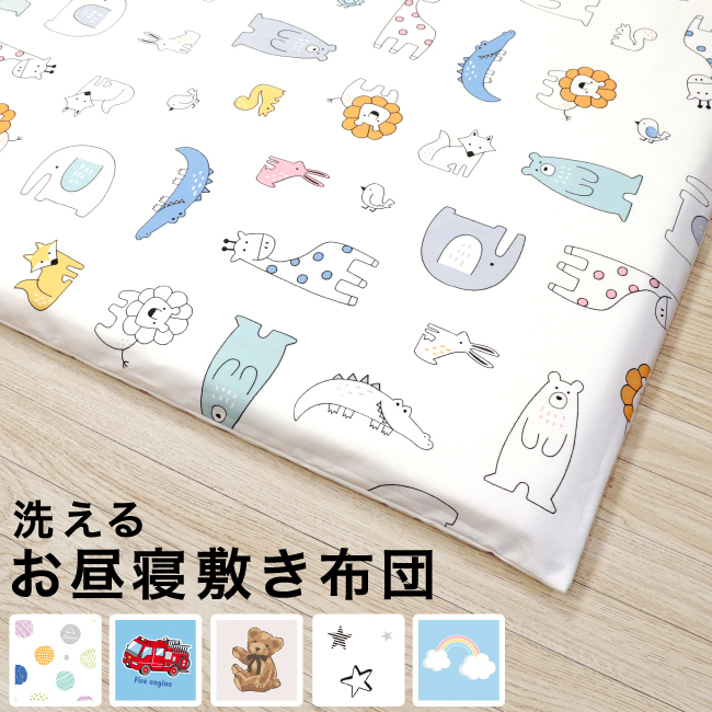 ■お昼寝敷布団 70×120cm 厚み約3cm 綿100% ドット 水玉 車 星 雲 アニマル テディベア くま 男の子 女の子 お昼寝 敷き布団 敷き布団カ