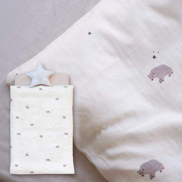 ■sandesica(サンデシカ) ほっと安心お布団セット 8点セット スリーピーベア/枕:スモークベージュ・レギュラーサイズ ベビー布団
