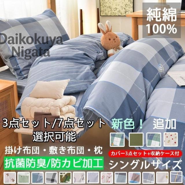 布団セット 綿100% シングル 3点/7点 敷布団 掛布団 枕 洗える おしゃれ カバー 掛け布団 敷き布団 枕 セット 抗菌防臭 防カビ 来客用 組布団 組み布団 安い