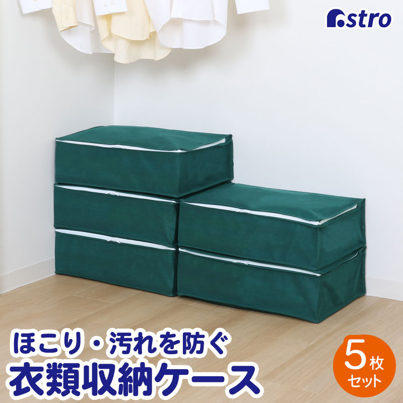 商品名:シンプルな収納ケース 衣類用 5枚組カラー:グリーンサイズ:約幅48×奥行35×高さ15cm材質:ポリプロピレン内容:5枚生産国:中国【収納目安(1ケースあたり)】●厚手セーター:約3〜5枚●薄手シャツ:約13〜15枚【特長】●通気性の良い不織布で、オフシーズンの衣類をホコリから守り大切に保管。●ダブルファスナーで3辺が開くので、洋服の出し入れがスムーズ。●無地のワンカラーでシンプルなので、押入れ内にもクローゼット内にも馴染む。●同シリーズの毛布用、羽毛布団用、布団一式用と合わせて使用するのもオススメ。【ご注意】●洗濯はできません。【不織布とは】不織布(ふしょくふ)とは、繊維を糸にして織ったり編んだりせずに、そのままシート状にした「織らない布」のことです。通気性が良くホコリを通しにくい生地のため、衣類や寝具の収納に適しています。アストロではスパンボンド方式で製造されたポリプロピレン製の不織布を主に使用しています。ASTRO CO., LTD established in 1970