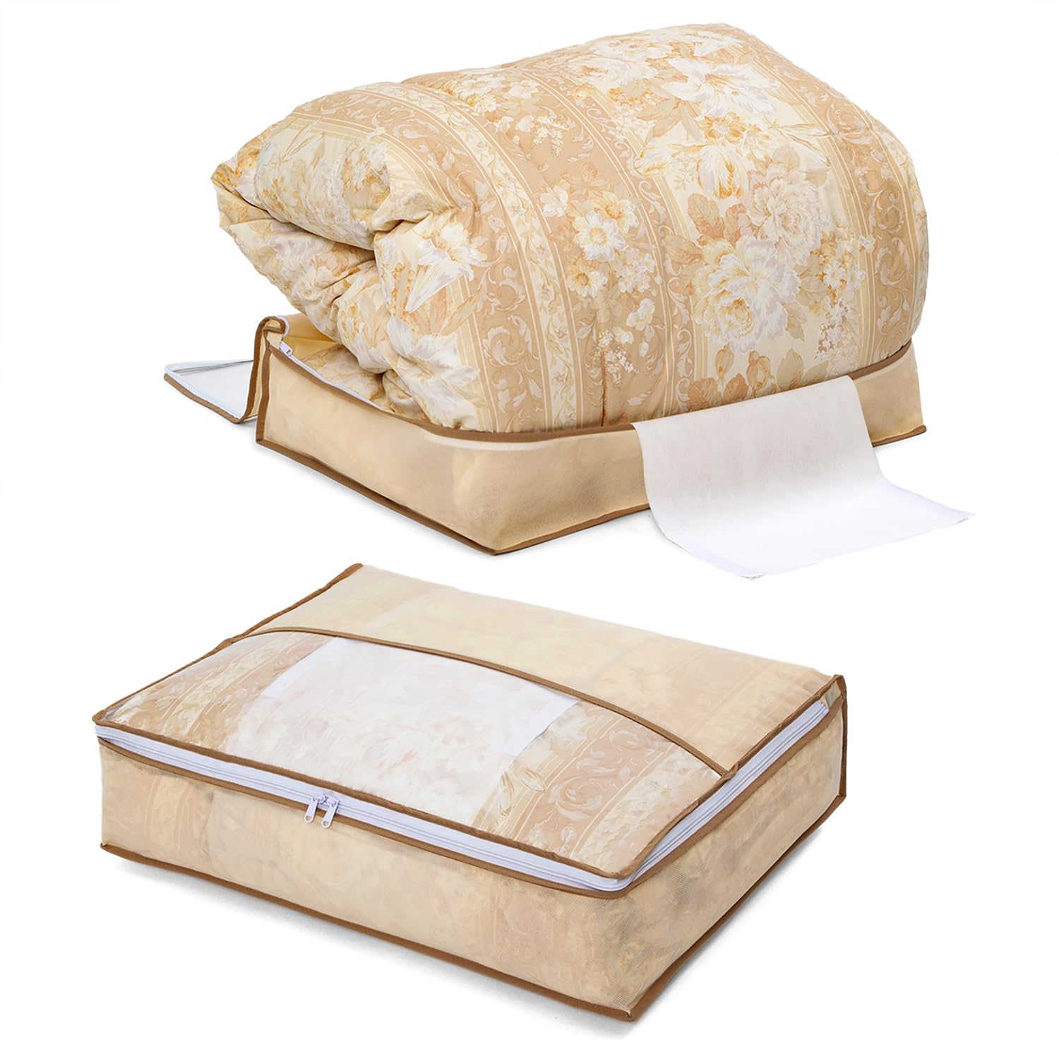 01 収納ケース 羽毛布団用 2個組01 ベージュ/スリム/131-45 ・Color:01 ベージュStyle:01 収納ケース 羽毛布団用 2個組 ・パッケージ個数:1 ・【商品仕様】:本体サイズ/約幅65×奥行50×高さ15cm、内容/2枚組、カラー/ベージュ、材質/ポリプロピレン・ポリエチレン、収納目安/シングルサイズの羽毛布団1枚 ・【簡単コンパクト収納】軽圧縮なので羽毛を傷めにくく、ふかふか感や暖かさを次のシーズンまでキープ。 ・【通気性に優れた不織布製】:羽毛布団をホコリなどの汚れからしっかりガード。通気性が良く湿気やニオイのこもりにくい不織布製。厚みのあるしっかりとした生地なので丈夫で破れにくい。 ・【中身が見える透明窓付き】:透明窓で中身の確認ができる。前面に透明窓が付いているので、次に使うとき探す手間が省ける。 ・【大きく開く三方ファスナー】:ダブルファスナーで3辺が開くので、かさばる羽毛布団も出し入れがスムーズ。
