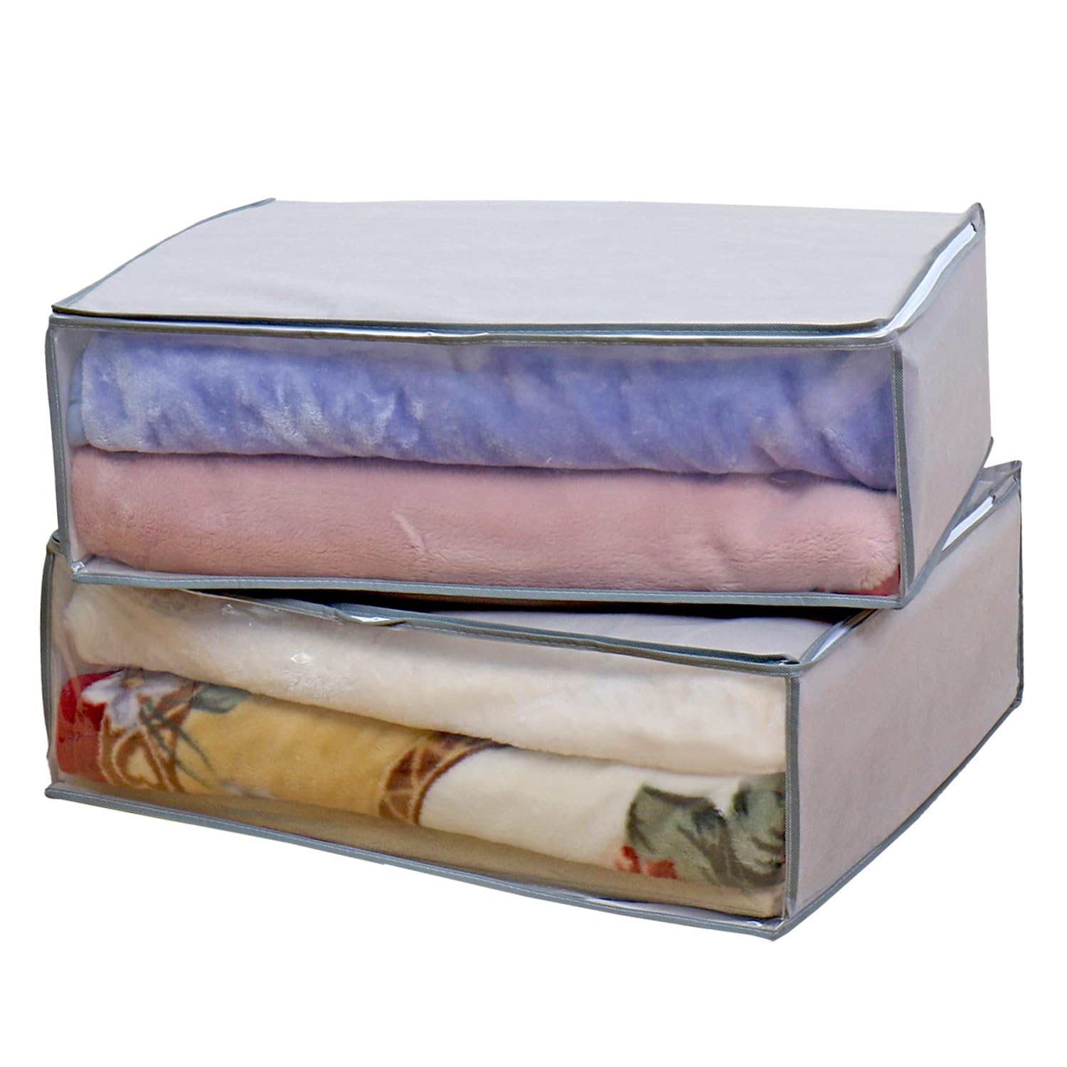 ■アストロ 布団収納ケース 毛布 軽寝具用 2枚組 通気性の良い不織布がホコリなどの汚れをガード 中身の見える透明窓付き ふとん収納 布団