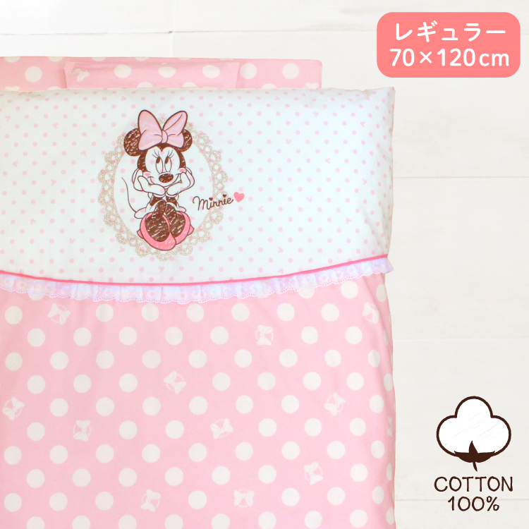 ■日本製 ベビー布団セット 11点 70×120cm レギュラーサイズ 綿100% 全て洗える ディズニー ミニー Disney ピンク レース ドット リボン