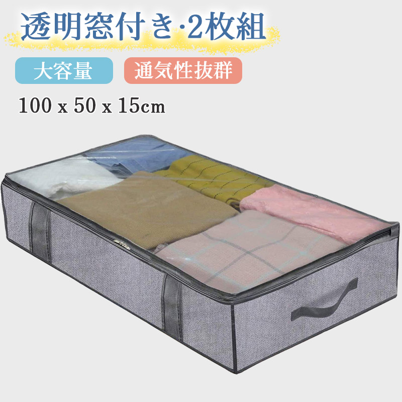 ■布団収納袋 布団袋 収納ケース 2枚組 押し入れ クローゼット 大容量 掛け 敷布団をまとめてスッキリ 圧縮ボックス 持ち手 透明