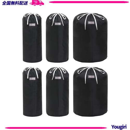 ■アストロ 収納袋 ブラック 6枚組(Sサイズ×2・Mサイズ×2・Lサイズ×2) 丸めて簡単収納 タオルケット 毛布 羽毛布団収納 巾着袋 収納バッ