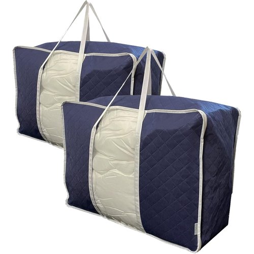 ■イニコライフ 布団収納袋 羽毛 布団袋 2枚組 全面 イズ用 かさばる羽毛布団をスッキリ 移動もラクラク 藍色