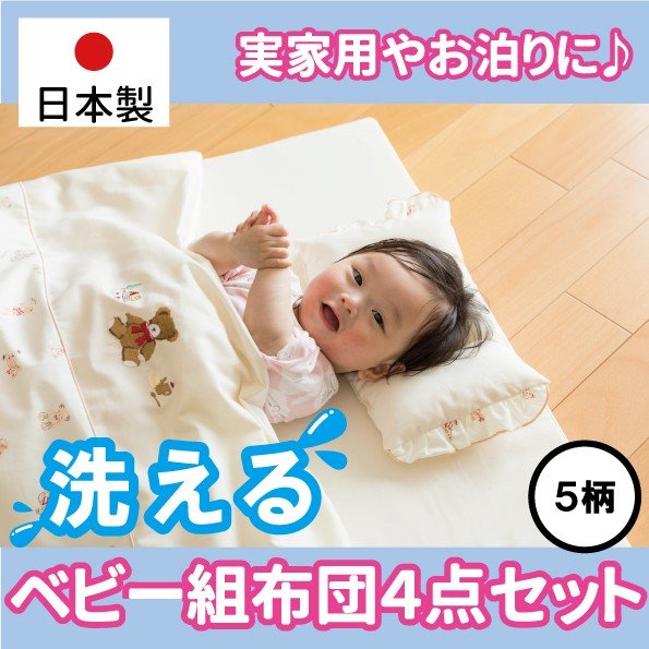 ■ベビー布団 日本製 安い 洗える ベビー布団セット 4点 お昼寝用 保育園用 くまさん メーカー直販