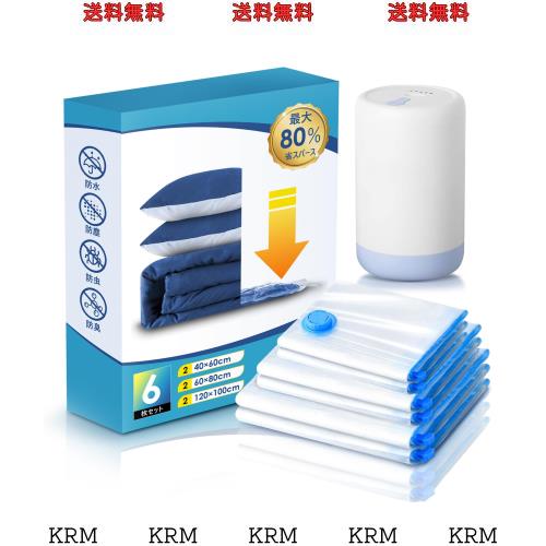 ■Yurion 布団圧縮袋 掃除機不要 衣類圧縮袋 旅行用圧縮袋 コードレス電動ポンプ付き 【6枚組/旅行に】120×100cm 2枚/60×80cm 2枚/40×60