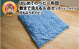■【ふるさと納税】はじめてのベビー布団 敷まで洗える6点セット ベビーサイズ 花もようネイビー