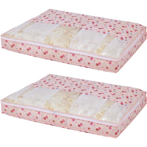 アストロ 収納ケース 羽毛布団用 シングルサイズ ピンク さくら柄 2個組 抗菌・防臭 不織布 収納袋 スリム 薄型 コンパクト 優しく圧縮 197-28