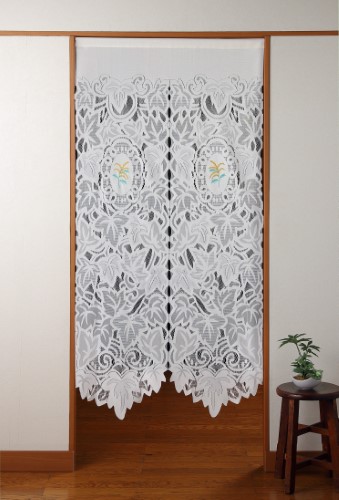 ■のれん 刺しゅう入りレース ミモザ 85×180cm 【北海道・沖縄・離島 送料別】