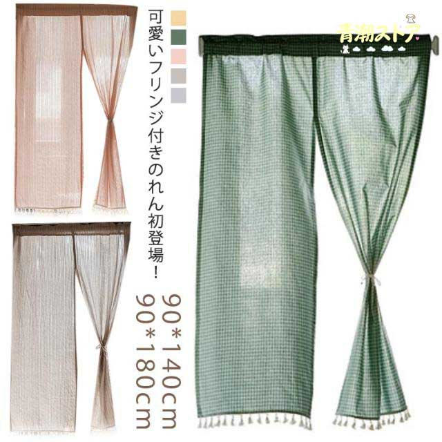 ■のれん 暖簾 85*140cm 85*180cm 送料無料 突っ張り棒付き のれんカーテン 厨房 キッチン 入口用 可愛い フリンジ付き チェック柄 インテ