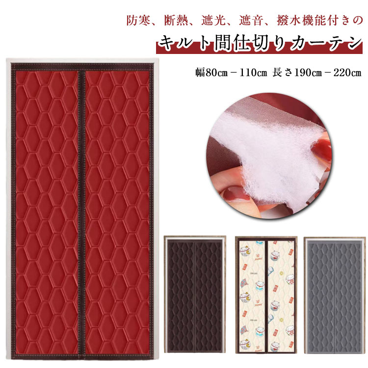 ■中綿入り キルト 間仕切りカーテン マグネット式 撥水加工 マジックテープ ドアカーテン 玄関カーテン 目隠し 防寒 遮断 のれん 防水 厚