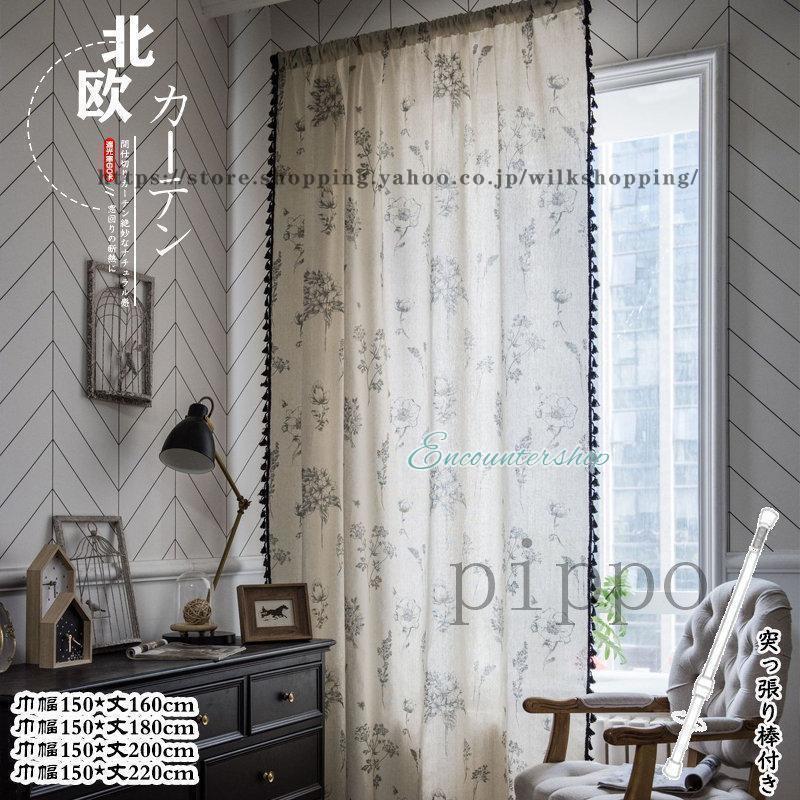 間仕切りカーテン ロング のれん 花柄 おしゃれ 北欧風 穴あけ/ポール 巾幅150cm 洗える 遮光 遮像 断熱 窓 ドア 仕切り