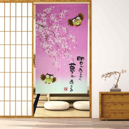 ■SAWABIYA のれん 暖簾 可愛い ふくろう 桜 花柄 和モダン 間仕切りカーテン おしゃれ 気分転換 梨地生地 ロング 目隠し 遮光 玄関 階段