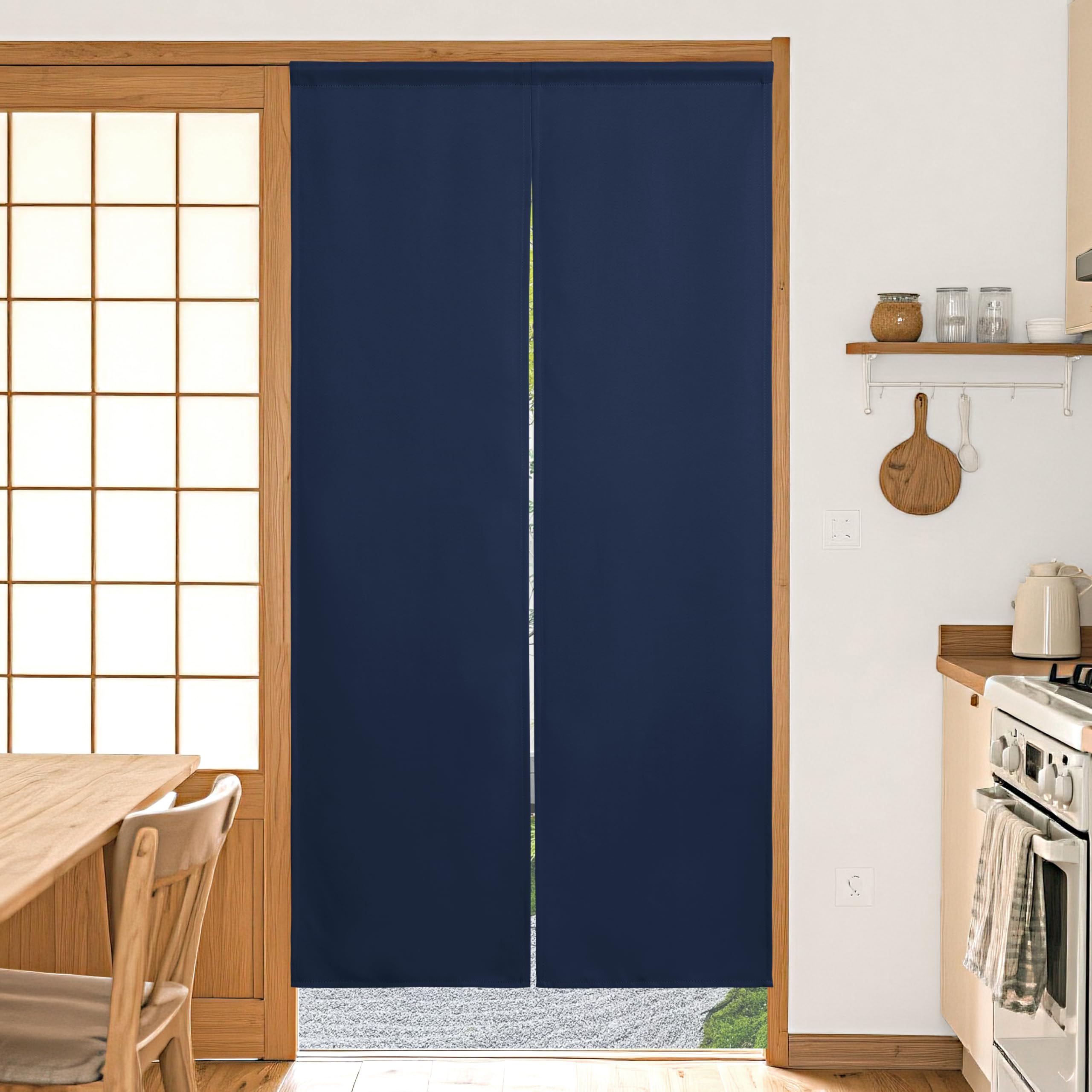 ■DWCN 遮光 のれん 無地 厚手 キッチン リビング 店舗 おしゃれ 和風 仕切り 断熱 防音 プライバシー保護 カーテン 幅72丈150cm ネイビー