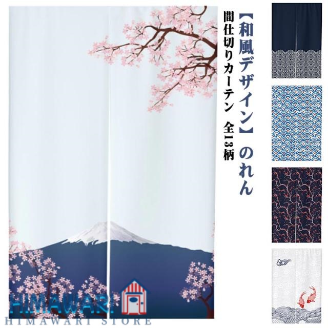 ■半間仕切りカーテン のれん 選べる13柄 和柄 暖簾 和風 幅85cm 丈150cm カーテン 間仕切り 選べる13柄 遮光 おしゃれ 桜 富士山 インテリ