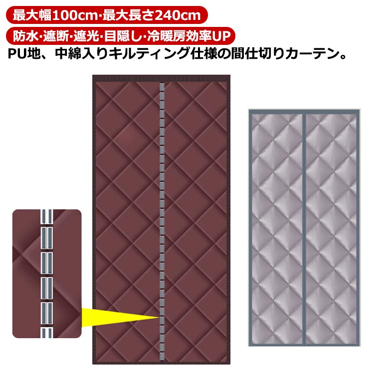 ■のれん 間仕切りカーテン 玄関カーテン PU レザー 中綿入り キルト 遮断 保温 防水 撥水 遮光 目隠し 暖簾 ドアカーテン マグネット式 マ