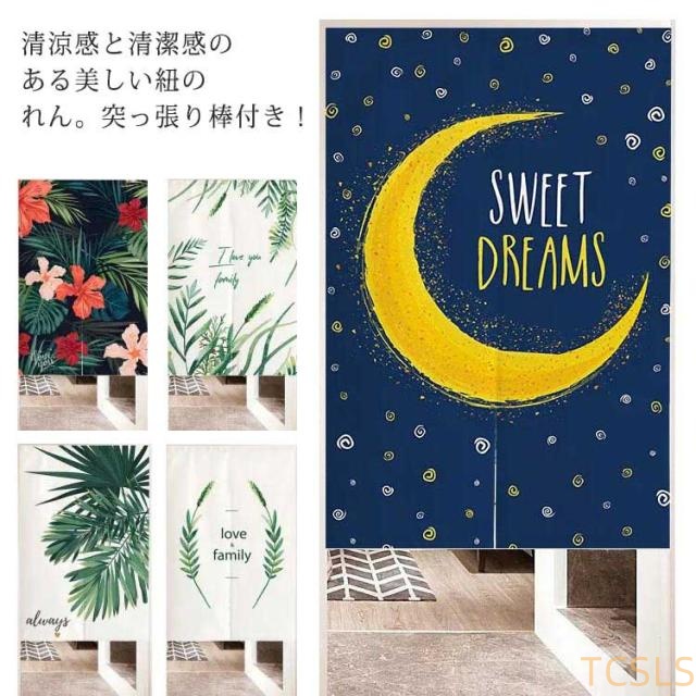 ひものれん 紐のれん 紐 ヒモ 間仕切りカーテン 暖簾 目隠し カーテン つっぱり式 突っ張り棒付き のれん カーテン 植物柄 葉 遮光 遮熱 おしゃれ 85×150cm 簡単取付け シンプル インテリア 北欧 送料無料