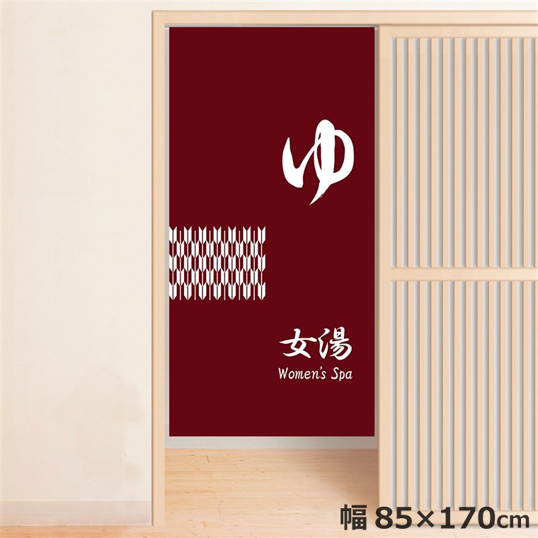 ■のれん 暖簾 温泉 洗える 目隠し 間仕切り タペストリー オリジナルプリント 転写 女湯 約85×170cm 温泉 ゆのれん 業務用 旅館 和 レッ