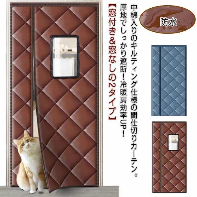 ■間仕切りカーテン ドアカーテン 防風 保温 防寒 中綿入り キルト 目隠し のれん 暖簾 マグネット マジックテープ 窓付き 厚手生地 防音
