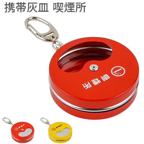 ■携帯灰皿 イエロー キーホルダー付き おしゃれ アイコス メンズ 丸形 屋外 灰皿 ギフト