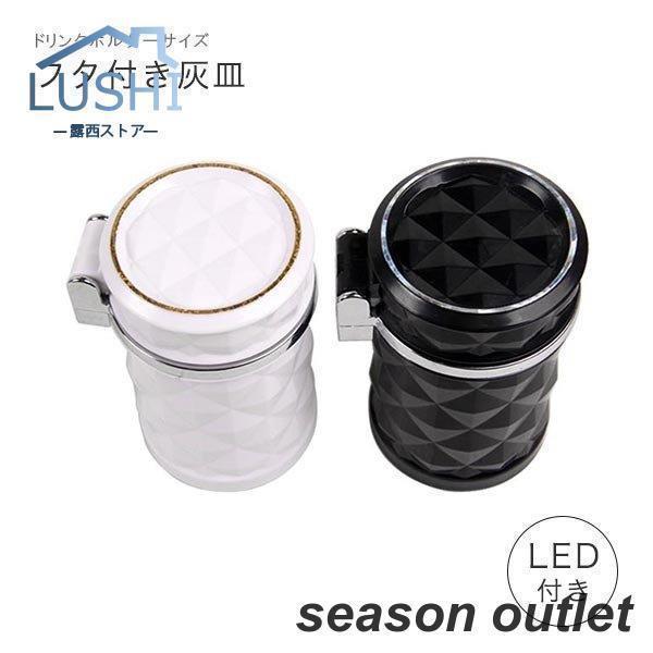 灰皿 車 タバコ 喫煙 車載用 ドリンクホルダー LEDライト付き 吸い殻 フタ付き カー用品 ブラック