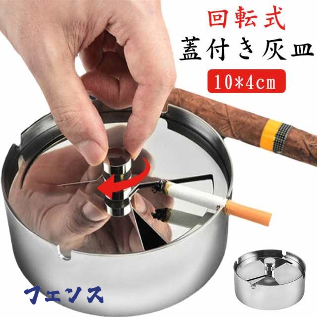 ■灰皿 ふた付き 大容量 ステンレス素材 卓上 屋外用 回転式蓋 密閉 密閉 卓上 客室 オフィス スタイリッシュ コンパクト 滑りにくい 煙と