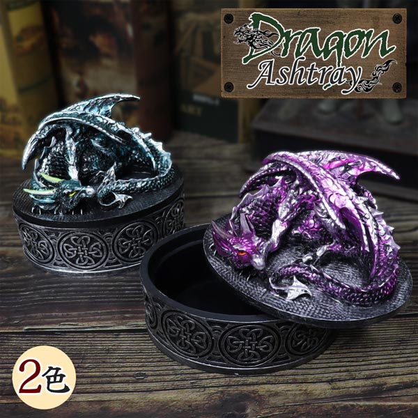 ■灰皿 ドラゴン 竜 龍 蓋付き ブルー パープル インテリア タバコ置き 喫煙グッズ RPG ファンタジー 翼竜 モンスター おしゃれ 送料無料