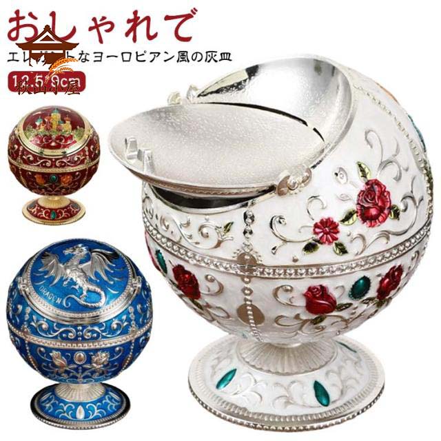 ■花柄 卓上 大容量 灰皿 客間 灰皿 バラ柄 アッシュトレイ スタンド 地球儀 龍柄 丸型 地球儀型 吸い殻蓋付き ヴィンテージ ヨーロピアン