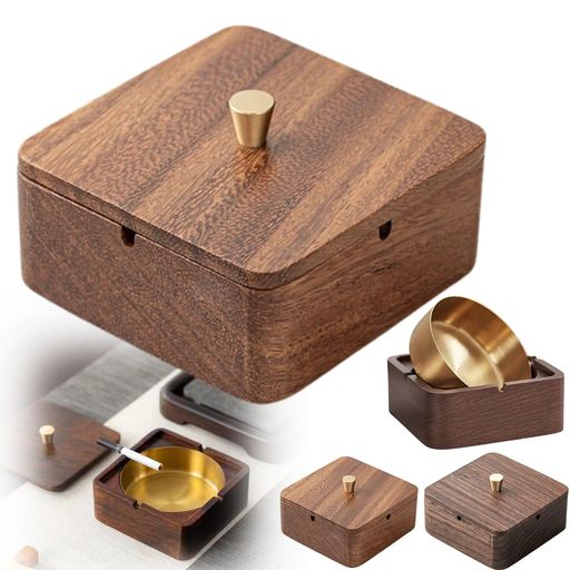 ■灰皿 木製 ふた付き はいざら ステンレス 卓上灰皿 屋内用ふた付き灰皿 おしゃれ 大容量 コンパクト 防錆 丸洗い可能 灰捨て簡単 つや消