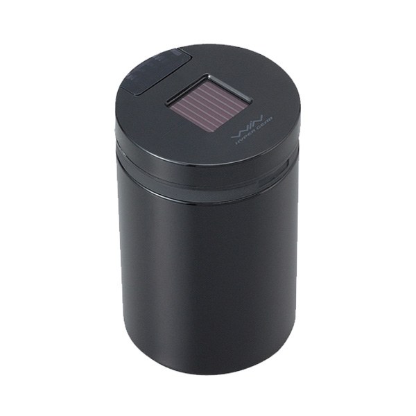 純正や後付けのドリンクホルダーにすっぽり収まる置き型タイプの缶灰皿です。夜間や暗い場所でのご使用に便利なソーラー充電で光るブルーLED照明付き。(LEDの点灯消灯はフタの開閉角度に伴って作動します。)差し込むと火が消える消火穴2つ付き。タバコ約2箱分以上入る大容量です。ご家庭やアウトドアでのご使用に便利です。●仕様:ブラック/ソーラーバッテリー