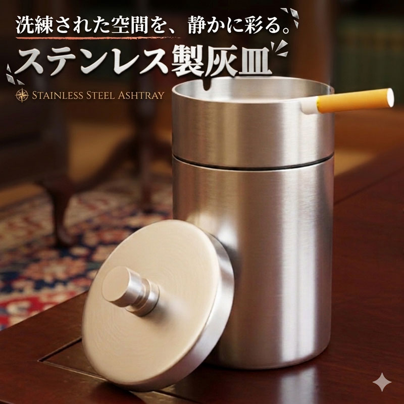 【商品仕様】 商品名: ステンレス製 蓋付き 灰皿 サイズ: 高さ14cm × 直径7.0cm 材質: SUS304ステンレス 洗練された空間を静かに彩る、機能美に優れたステンレス製灰皿です。 高品質な304ステンレス鋼を採用しており、耐久性と耐火性に優れています。 上部のU字型スリットは点火中のタバコを安定して置くことができ、休憩時も安心です。 中央に穴が開いた漏斗構造により、灰や吸い殻がスムーズに内部へ落ち、飛散やニオイを最小限に抑えます。 蓋付きの密閉設計なので、吸い殻の不始末によるトラブルを防ぎ、清潔な環境を保ちます。 パーツは分解可能で丸洗いができるため、お手入れも非常に簡単です。 リビングやオフィス、車内、アウトドアなど、シーンを選ばず多用途にご活用いただける大人向けの喫煙具です。 アッシュトレイ ふた付き すてんれす 錆びにくい 頑丈 タバコ 煙草 たばこ 煙 分解 洗浄 清潔 臭い漏れ防止 火消し 蓋付 外置き 室内 ベランダ バルコニー 庭 カフェ 飲食店 ホテル 会議室 デスク 周り カー用品 ドリンクホルダー 対応 持ち運び レジャー キャンプ 釣り か